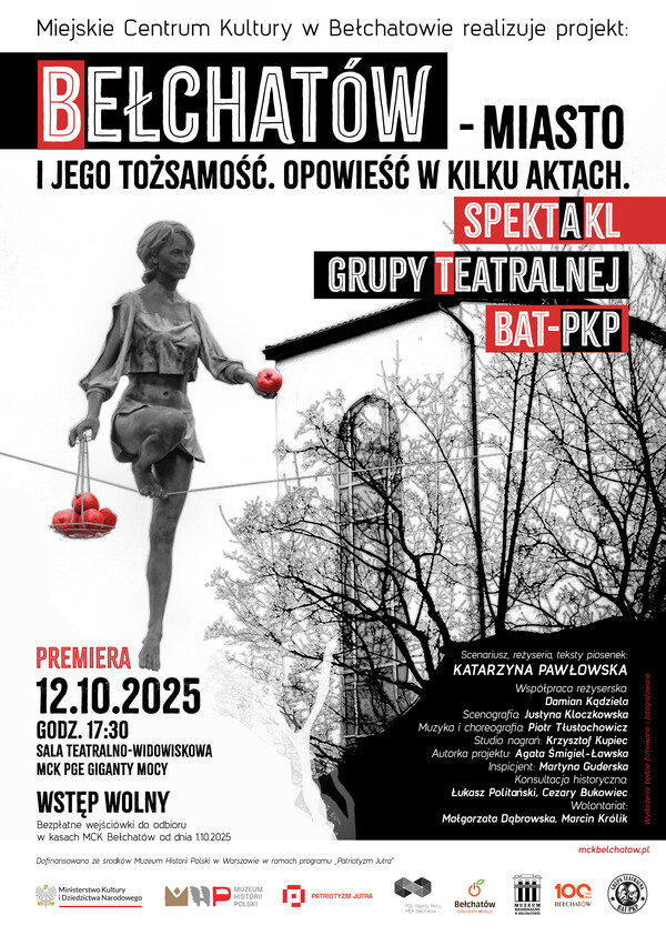 Spektakl powstaje w ramach projektu „Bełchatów – miasto i jego tożsamość. Opowieść w kilku aktach”, realizowanego przez Miejskie Centrum Kultury i dofinansowanego ze środków Muzeum Historii Polski w ramach Programu Dotacyjnego „Patriotyzm Jutra” 2025.