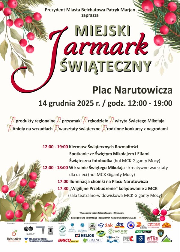 Miejski Jarmark Świąteczny potrwa do godz. 19:00. Już dziś zapraszamy na niego wszystkich bełchatowian, a także gości. Dołączcie do nas 14 grudnia, wspólnie poczujmy niezapomniany klimat Bożego Narodzenia.