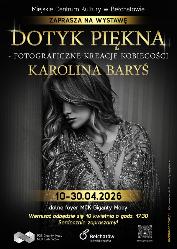 Miejskie Centrum Kultury zaprasza na wystawę fotograficzną „Dotyk piękna – fotograficzne kreacje kobiecości” autorstwa Karolina Baryś. Wernisaż odbędzie się 10 kwietnia o godzinie 17:30 na dolnym foyer MCK Giganty Mocy.